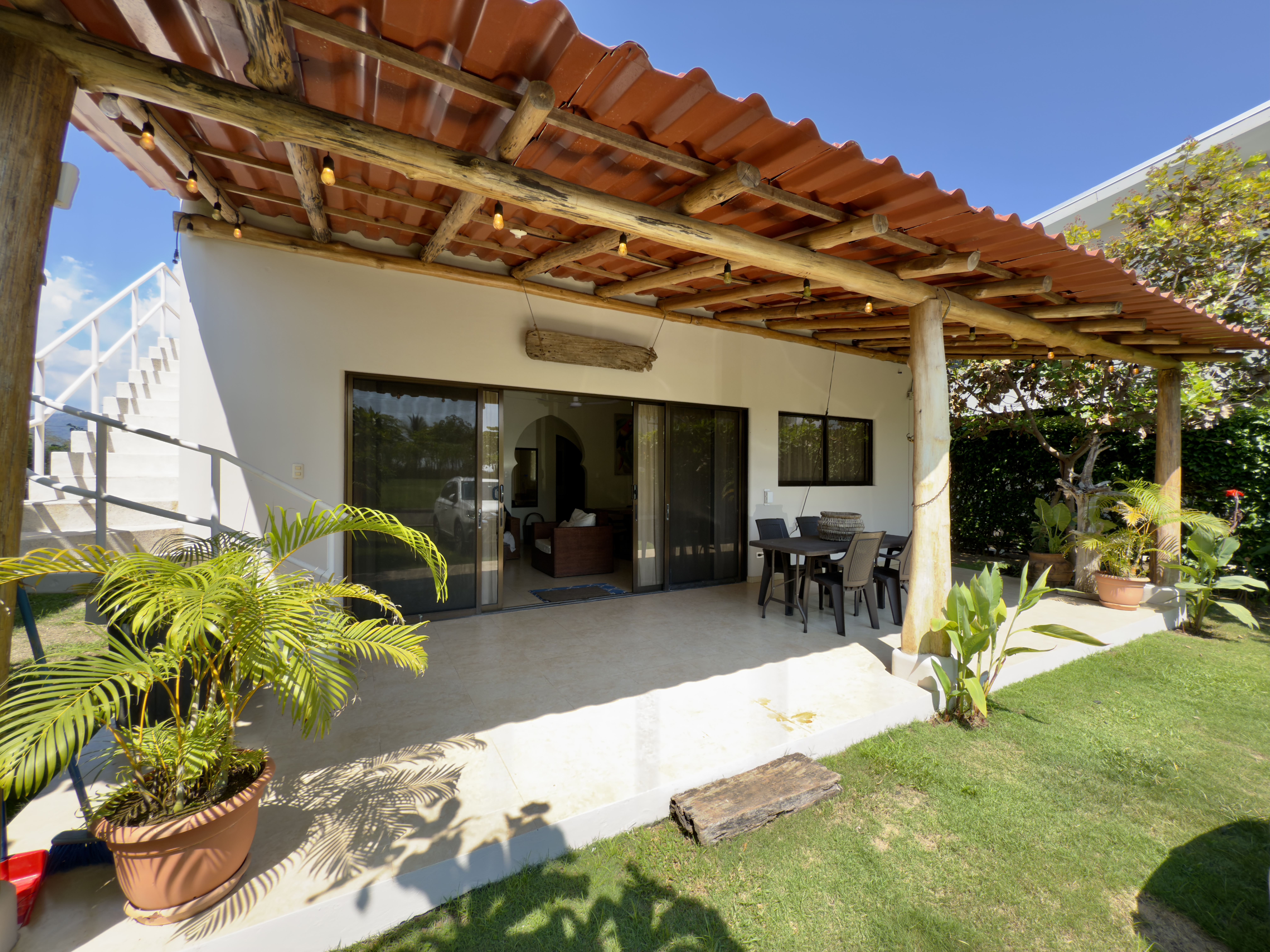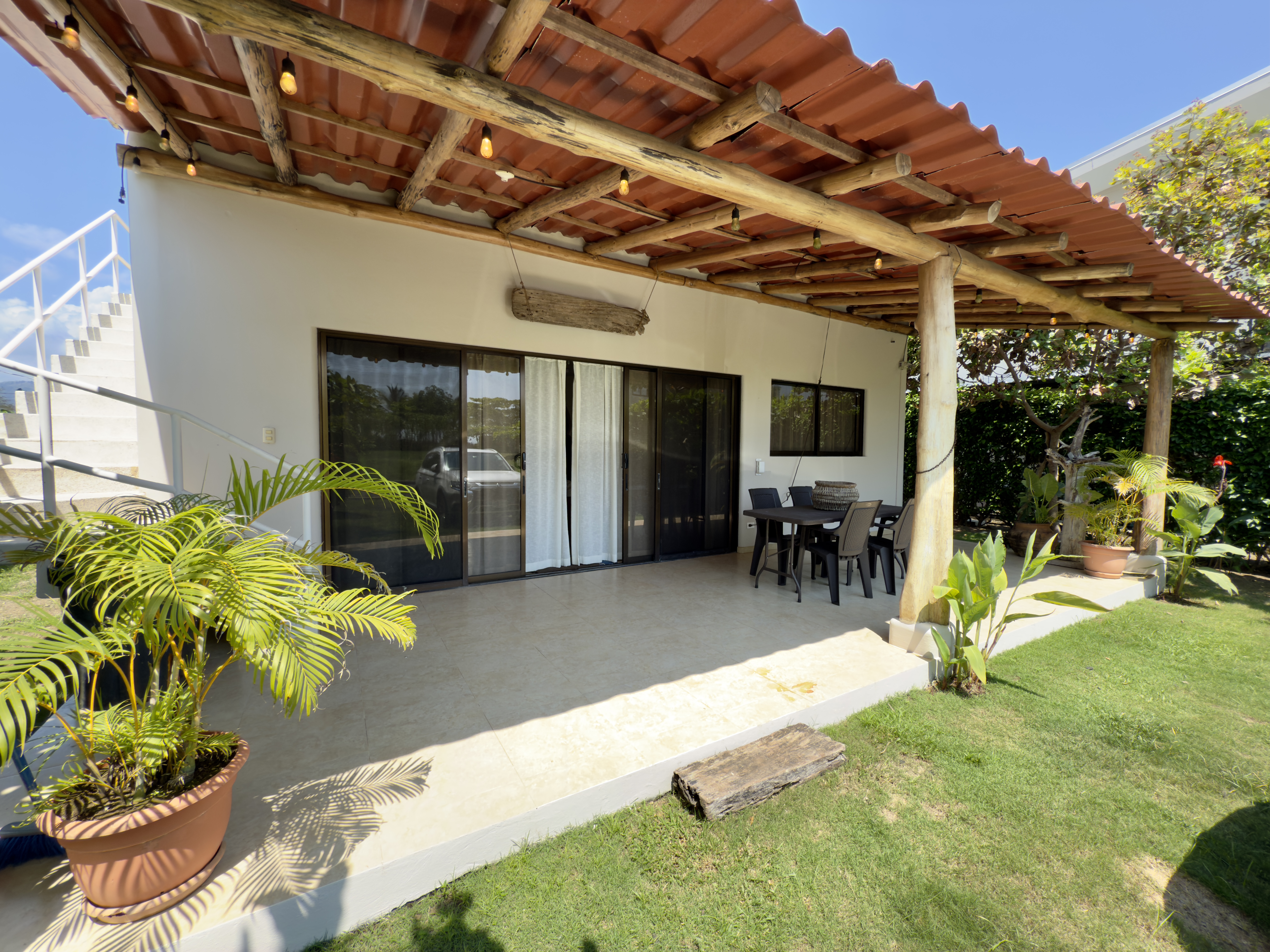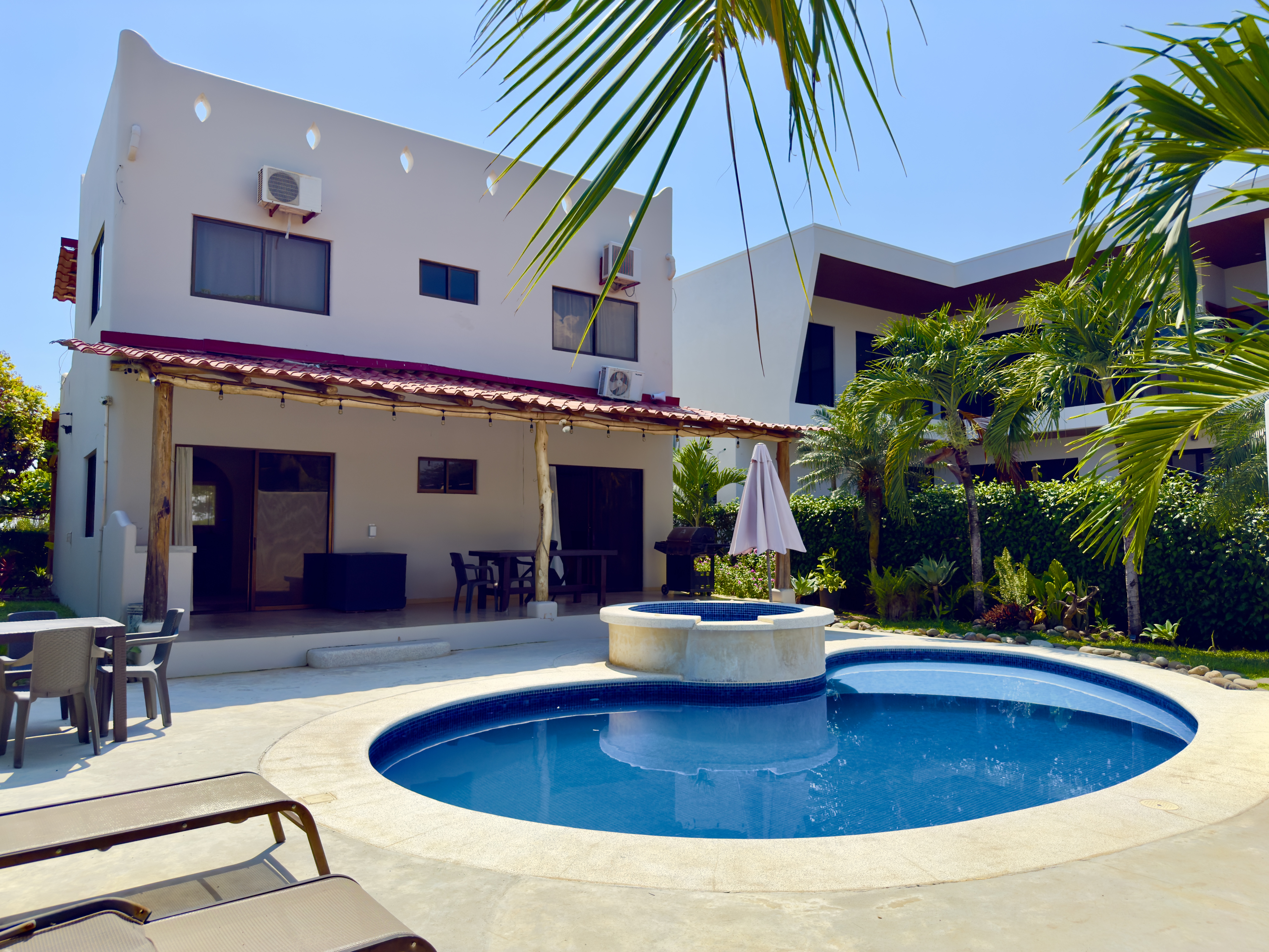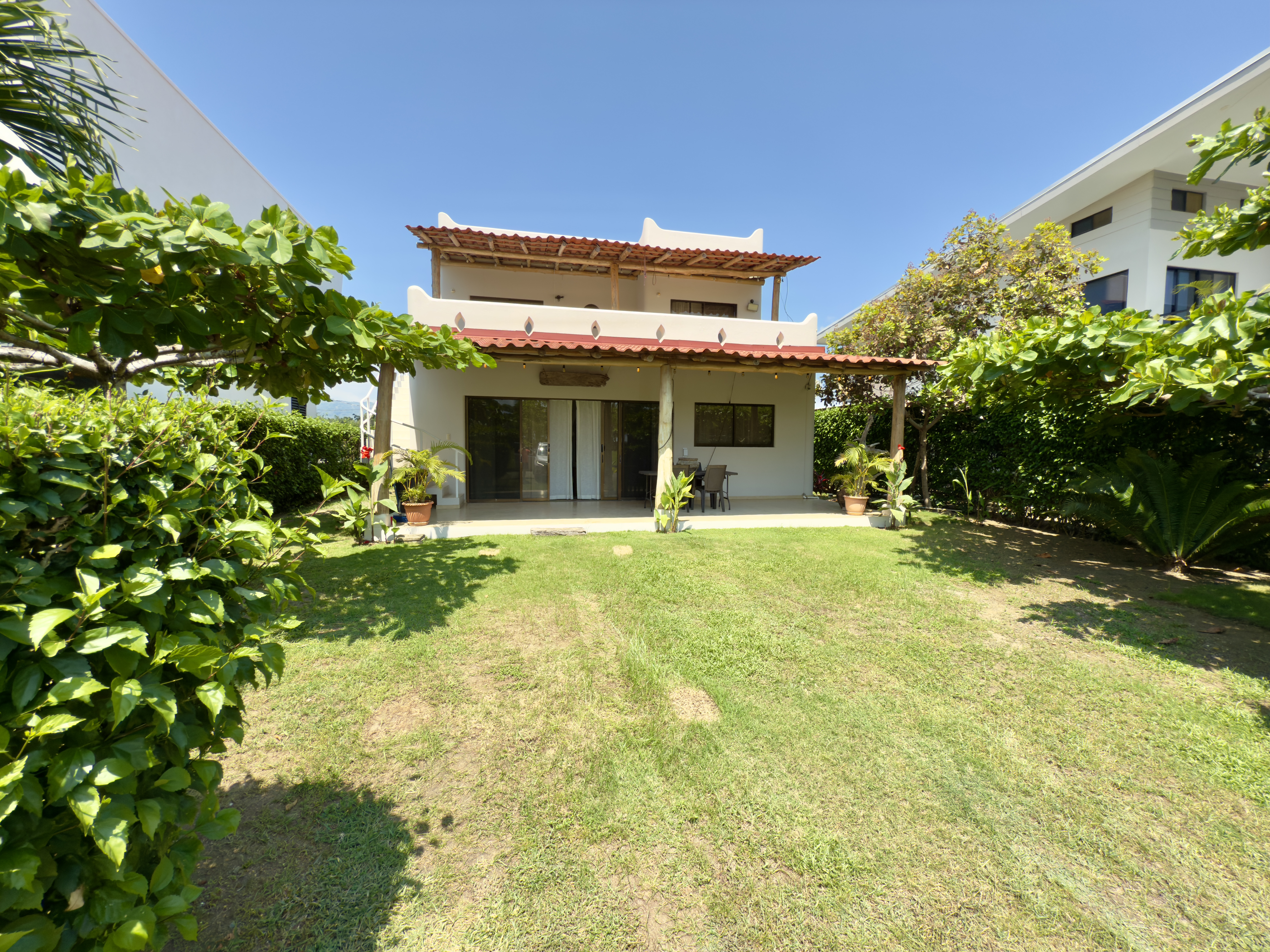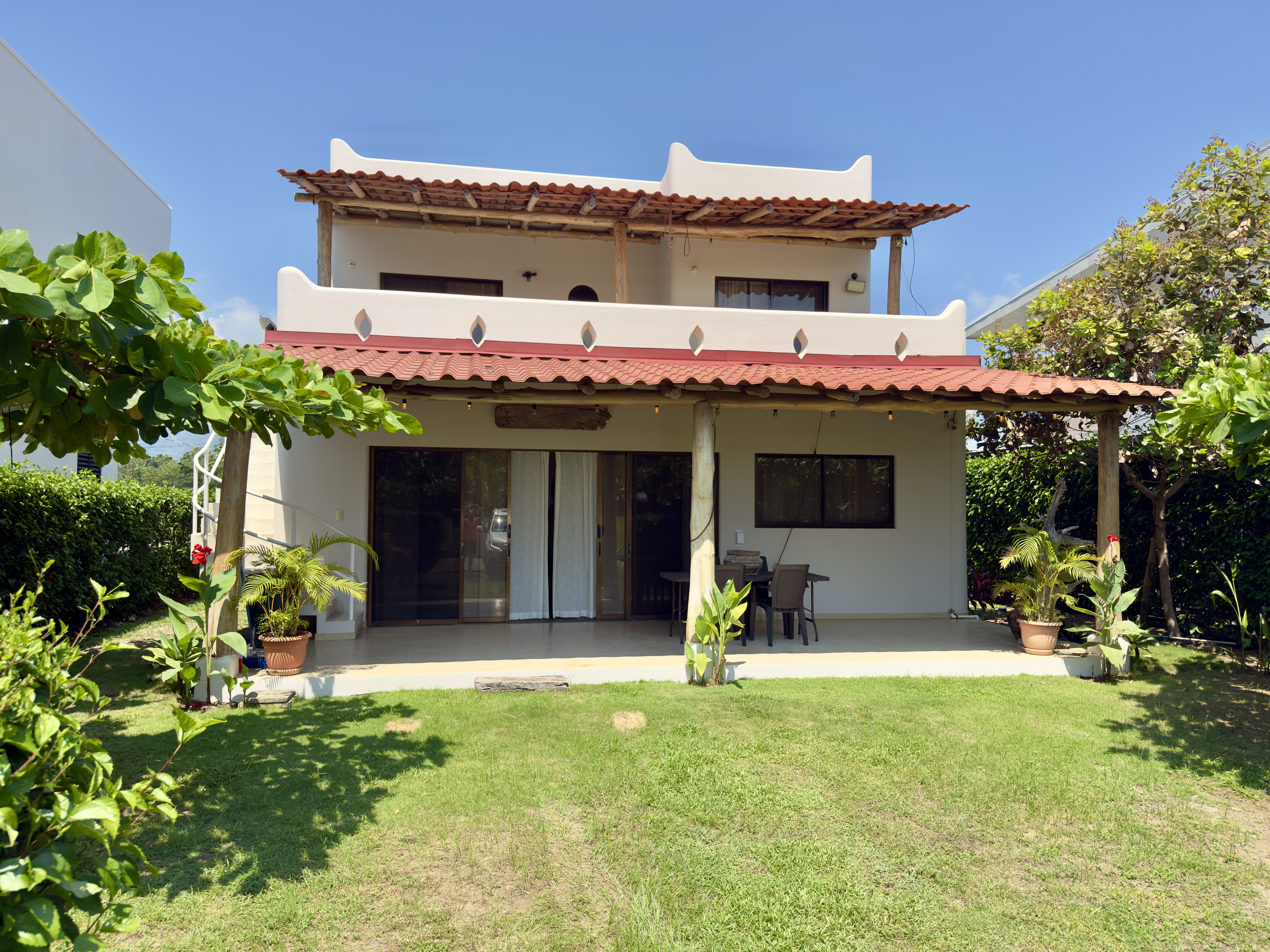 Experience the ultimate beachfront living in this stunning two-story home located in Playa Hermosa, just steps away from the ocean. Situated in a secure gated community with 24-hour security and full amenities, including internet and an alarm system, this residence offers privacy, comfort, and an incredible beach atmosphere.