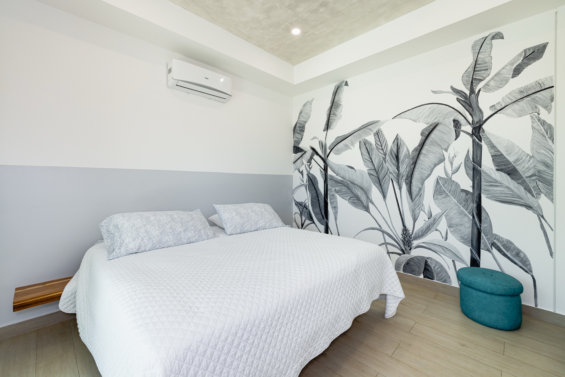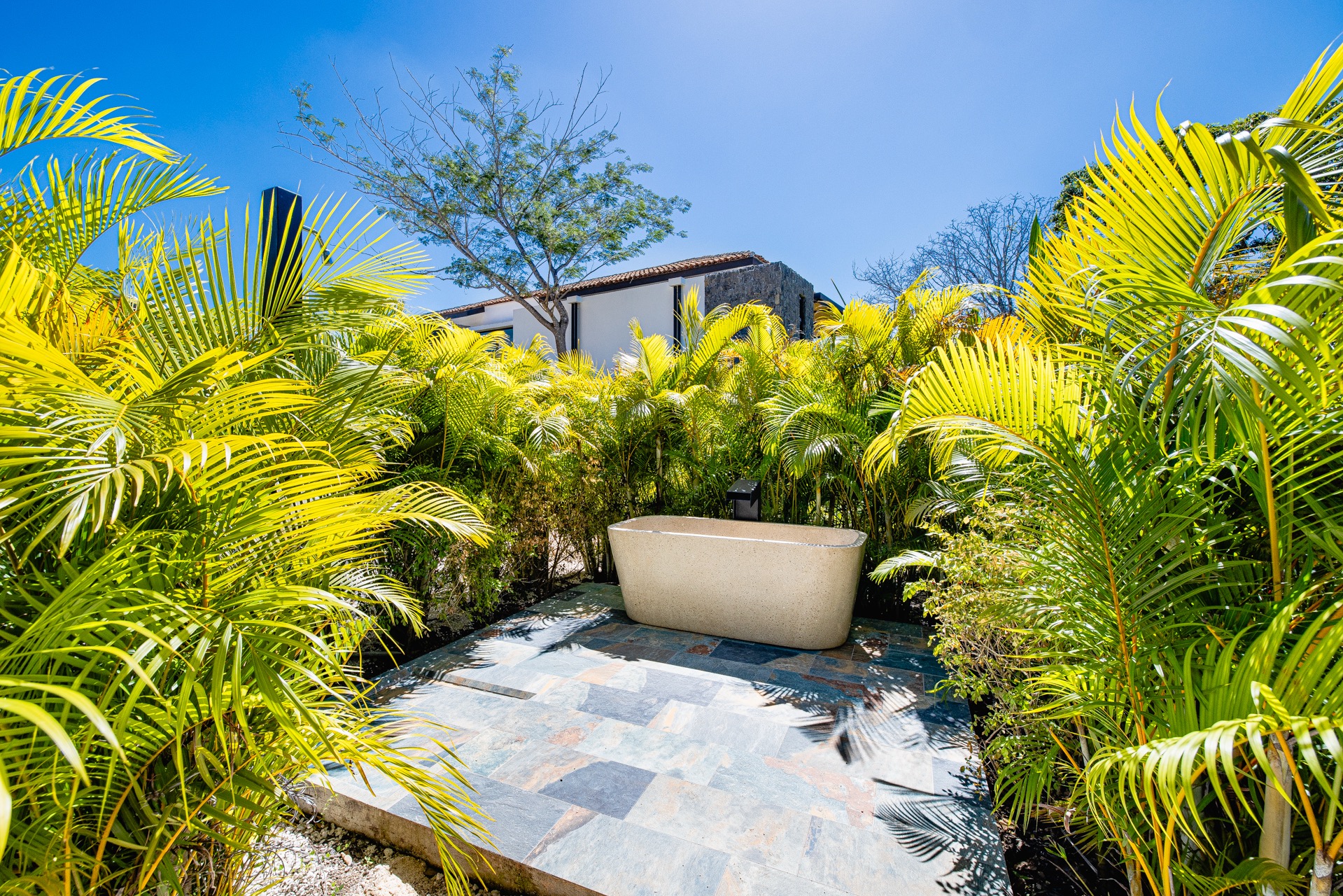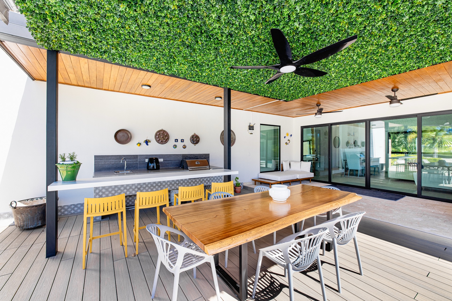 The terrace offers lounging chairs with a stunning view of the pool and the green areas, where you can soak up all year-round sunshine and be mesmerized by breathtaking sunsets. The BBQ area offers a dinner table and a large countertop with a built-in grill, ideal to enjoy meals and gatherings under the beautiful Costa Rican weather.