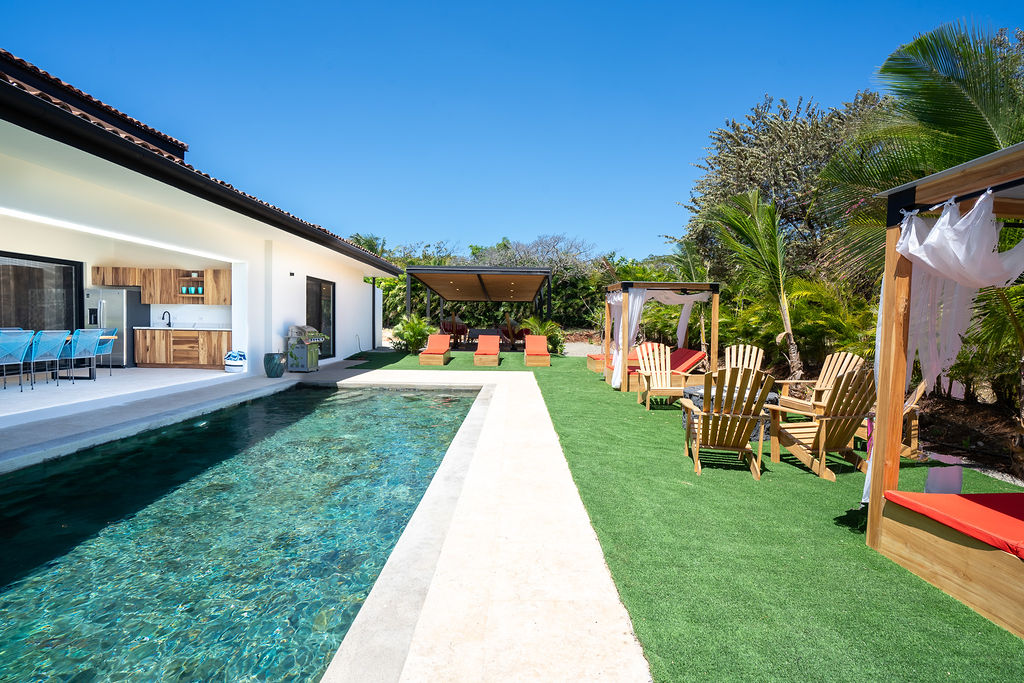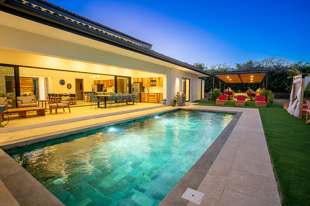 The owner is open to offering financing of up to 85% of the property value, with competitive interest rates, flexible short- or long-term terms, no origination fees, and no prepayment penalties. Additionally, there is an option for reduced monthly payments during the first two years, allowing buyers to establish peak rental cash flow. Terms can be tailored to suit qualified buyer needs.Situated in the heart of the Nicoya Peninsula Blue Zone, this modern beach villa offers a rare opportunity to enjoy world-class wellness, luxury amenities, and the Pacific Ocean just moments away. The property is located only three blocks from the JW Marriott Guanacaste and just minutes from Playa Mansita, one of the most desirable white-sand beaches within the resort—renowned for calm waters, excellent swimming conditions, and snorkeling at low tide.
